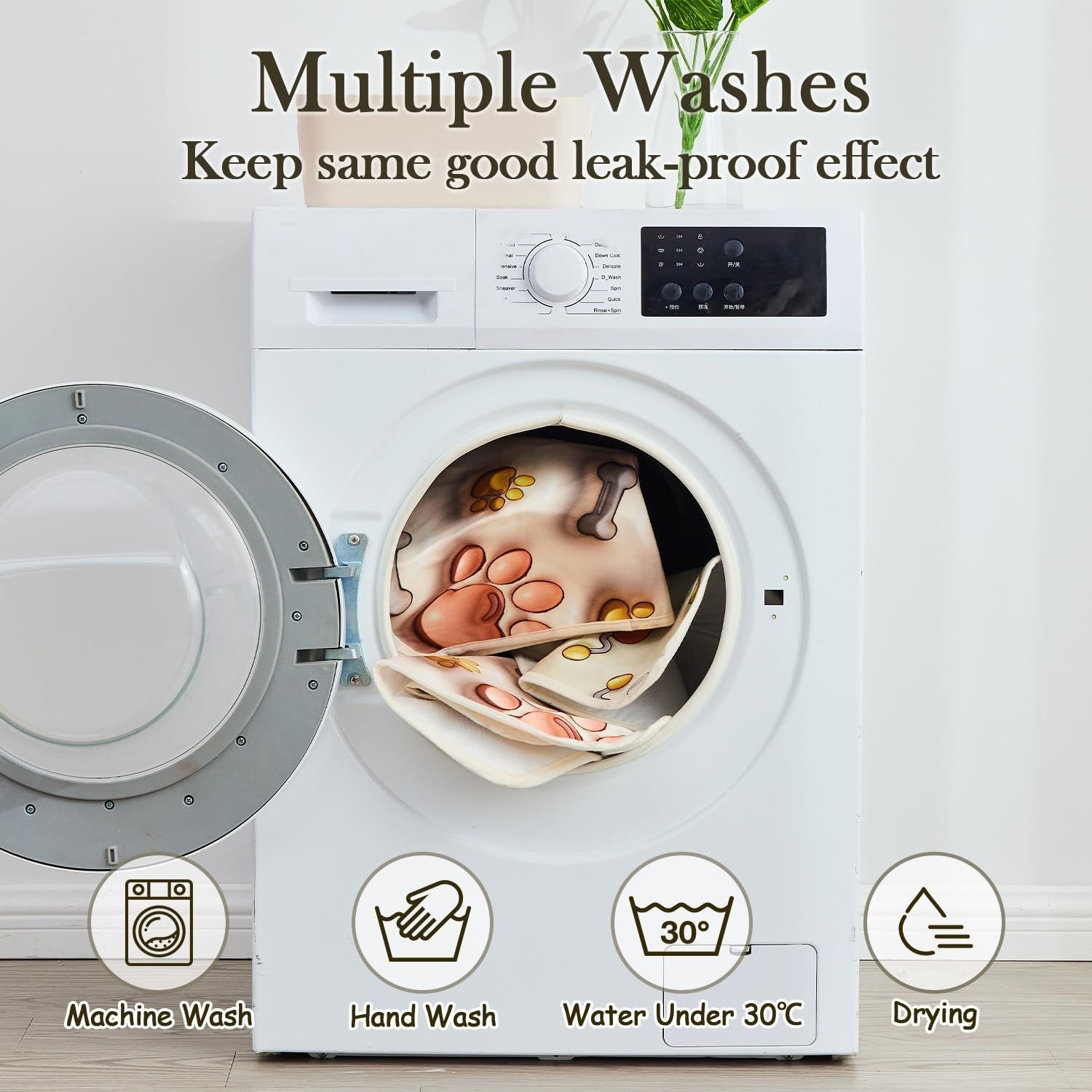 Thermoplastic Polyurethane[Fast Absorbent & Leakproof]Our Pee Pads are made of absorbent napped fabric, breathable super anti-leak TPU and absorbent pongee with non-slip rubber. These puppy pads can immediately absorb water to protect your floor, couch or carpet from the odor of dog urine stains and create a dry home for dogs.[3D Washable & Reusable Pee Pads]3D stereoscopic visual design, full color,no fade. Washable TPU coatings make our reusable training pads stand up to repeated washing or urine soaking. You can wash by hand or machine, Don't worry about fading and damage. They will give you visual enjoyment and save you money at the same time.[Non-Slip Puppy Pads]The bottom of the urine pad is made of non-slip rubber, which can keep the reusable pee pads on the floor or couch to keep your dog safe. The puppy pads can also protect your floor and furniture from scratches and getting dirty.[Multipurpose]Training pee pads are suitable for floor, bed, couch, crates, carpets, car and can help puppies, incontinence, elderly or sick dogs potty properly, so as not to stain the floor, cage, or bed. These 3D mat can be used as whelping pads, litter mat, playpen mat and wee wee pads. They can als give your dog a sense of home even when traveling.[Chic 3D Puppy Supplies]Our dog pee pads come in different cute 3D pattern, it will bring a strong sense of visual impact. in addition to being puppy supplies to train and prevent leakage, you can even decorate your floor, home with this puppy pad.